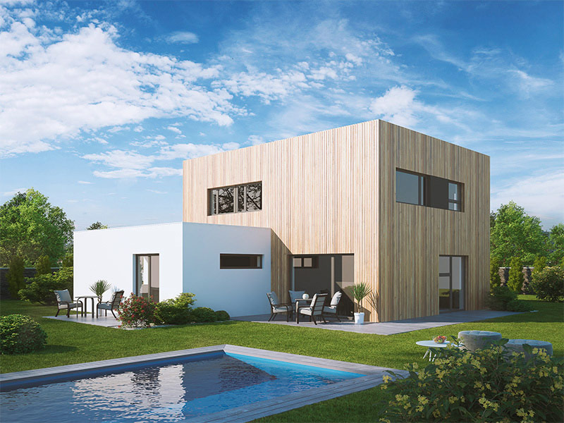 Celá stavba je do velké míry podřízena logice spojení dvou bytů do jednoho domu. Vzniká tak kompozice dvou kvádrů. Jednoho přízemního pro byt 2+KK a druhého dvoupodlažního pro byt 4+KK. Tyto kvádry se vzájemně prolínají a vytváří tak kolem domu soukromé terasy pro jeden či druhý byt. Pro podtržení rozčlenění hmoty na dvě různé komponenty je použito barevné odlišení v podobě bílé a světlého dřeva. Právě tento princip, kdy některé věci k sobě patří a jiné ne, dělá tento dům ideální pro velkou vícegenerační domácnost.
