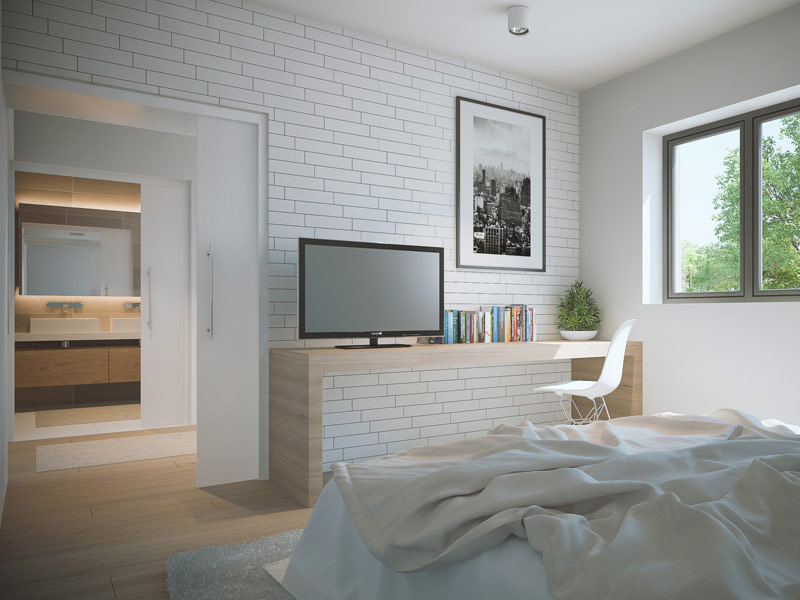 Přímé spojení obytné místnosti a ložnice eliminuje potřebu chodeb a minimalizuje tak vzdálenosti, které musí starší lidé překonávat. Stejně tak i koupelna a toaleta jsou přímo přístupné z obývací místnosti, respektive z ložnice. Celý byt určený prarodičům je bezbariérový, připravený pomoci jeho obyvatelům užít jsi klidné stáří. Blízko vstupu do bytu 2+KK je také samostatný vstup do bytu 4+KK, kterým se vstupuje skrz velké zádveří přímo do obývacího pokoje rodičů.
