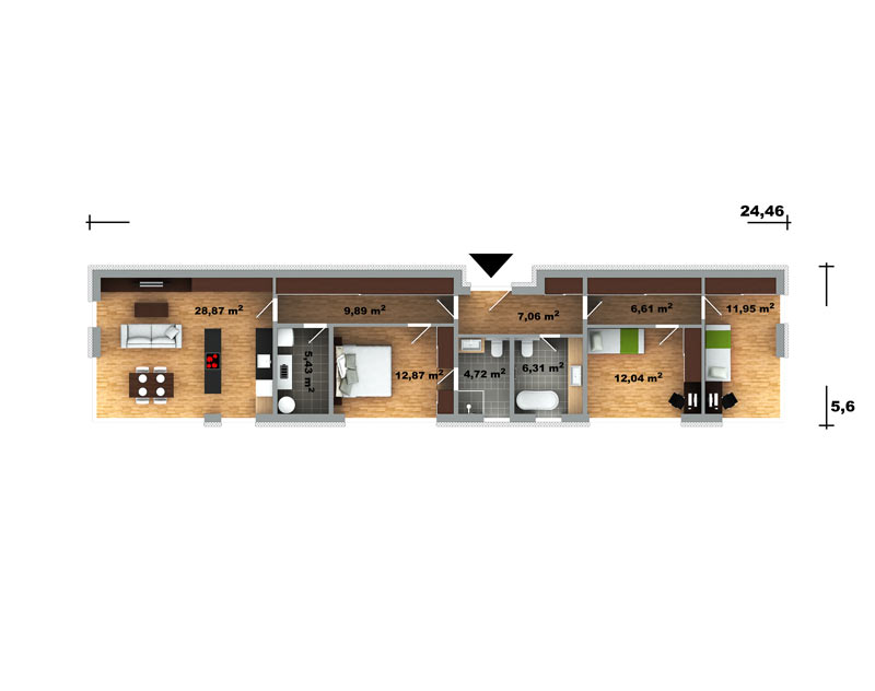 Pro nezávislé domy jsme v Ekonomkách vytvořili vlastní koncept stavby. Dům vychází z běžné zděné pasivní skladby. Využívá maximální orientaci na jižní stranu pozemku a tím pasivní ohřev od slunce v zimě. Zároveň dobře řeší ochranu před sluncem a přehříváním v létě. Obdélníkovým půdorysem využíváme tento efekt co nejvíce. Obdélník je také navržený k co nejlepšímu využití fotovoltaických panelů na výrobu elektřiny.