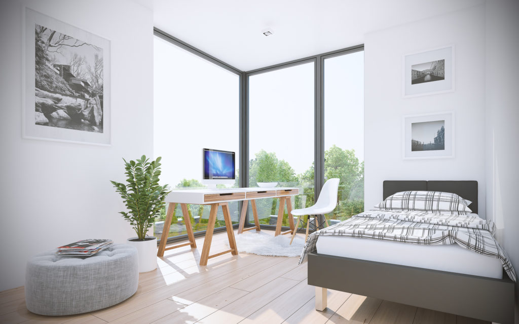 Z krytého venkovního závětří se vstupuje do zádveří. Z toho lze vstoupit do garáže s technickou místností, nebo rovnou do schodišťového prostoru, odkud je pak přístup na WC se sprchou a také do hlavní obývací místnosti s kuchyňským koutem. Z tohoto prostoru je také přístupná místnost pro domácí práce, což jistě ocení maminky, které i při práci musí kontrolovat a dohlížet na malé děti. Obytná místnost obsahuje dva dominantní prvky. Prosklené rohové okno na jednom konci a krbová kamna na konci druhém. Výhled z tohoto pokoje tedy nikdy nebude nudným. Ve druhém patře je hned u schodiště situována malá, díky schodišti vzdušná chodba, že které se dá dostat do všech místností horního podlaží. Tedy do ložnice s krásným oknem proti posteli, sestavě dvou velkých dětských pokojů se šatnou (nebo hernou, či pracovnou) a v neposlední řadě také do útulné koupelny a na samostatně oddělené WC.