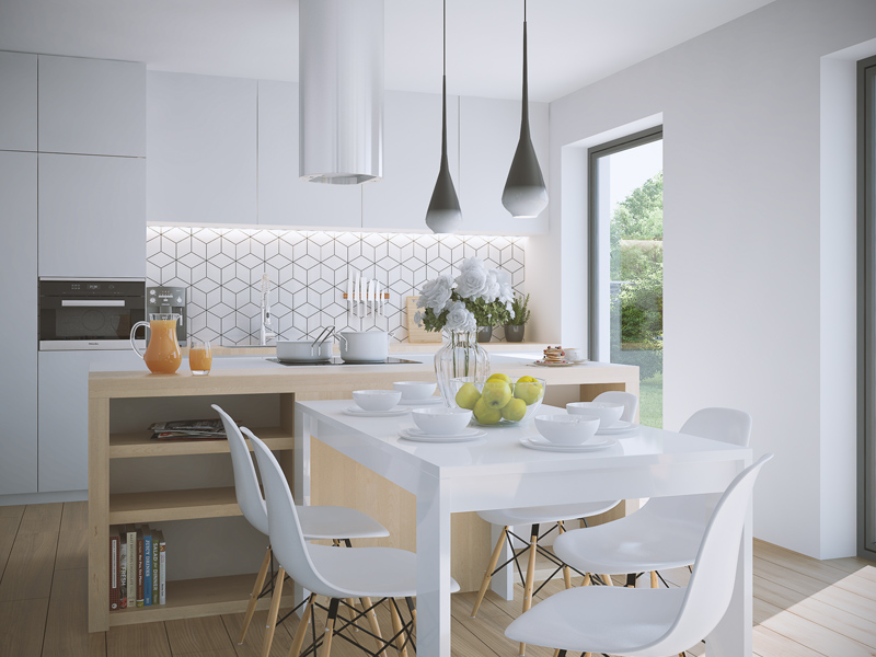 Kromě výhledu do zelené oázy vám chodba nabídne také stránku praktickou. Tou jsou dlouhé vestavěné skříně, které uskladní vše, co budete potřebovat. Když se vydáme od atria směrem na jih do zahrady, dostaneme se do druhé nejdůležitější místnosti v domě.