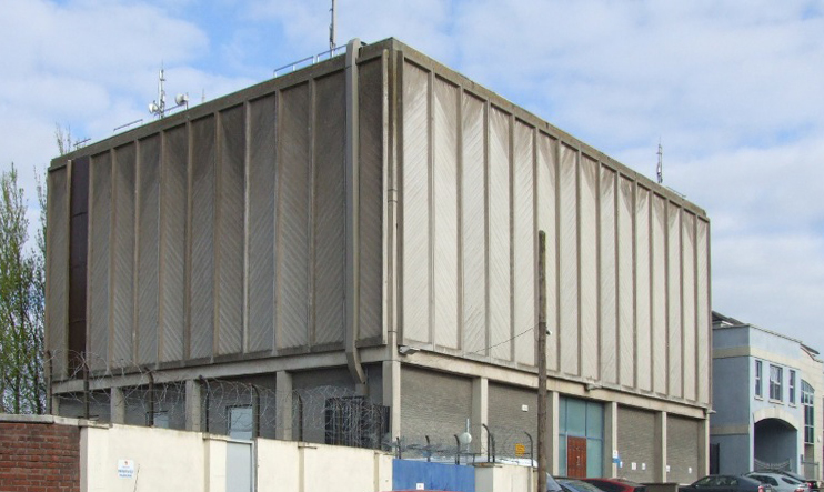 Krychlová betonová stavba bez oken vyrostla podle návrhu Cathal O’Neill Architects v roce 1980. Její vzhled odráží tehdejší obavy z jaderného útoku a důraz na zabezpečení komunikace. Fasádu tvoří betonové panely 10 metrů vysoké a 1,5 metru široké. Brutální brutalismus. Industriální pevnost z monolitických kvádrů je jakousi nástupkyní normanských a anglo-irských kamenných hradů. Pro někoho je možná ošklivá, ale respekt budí stejný.