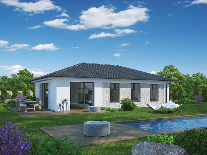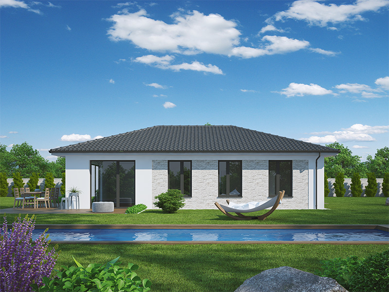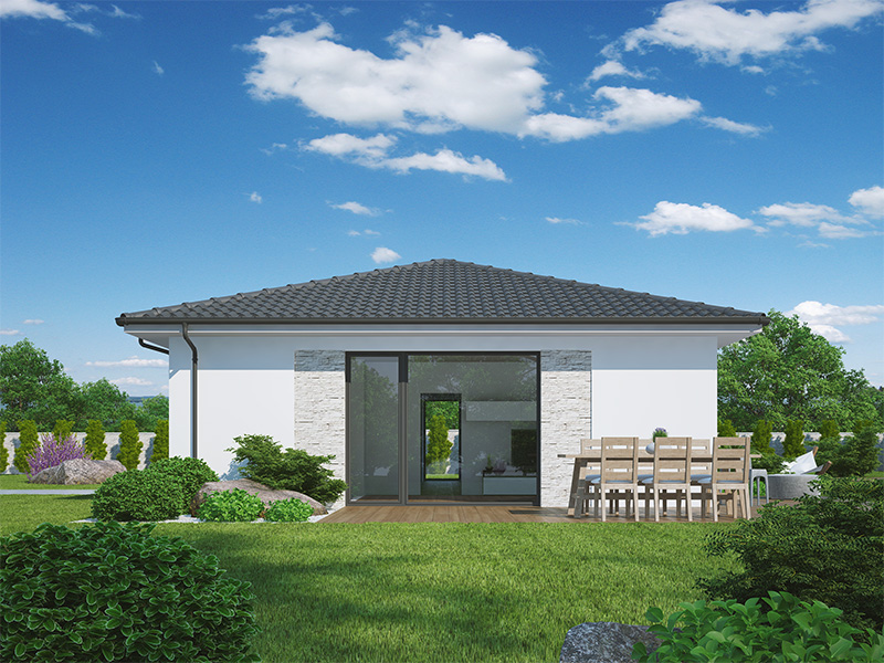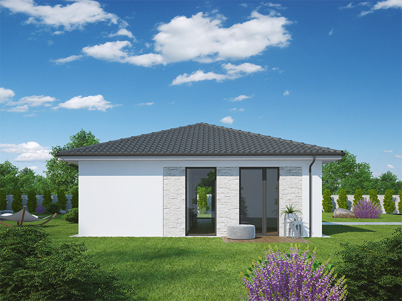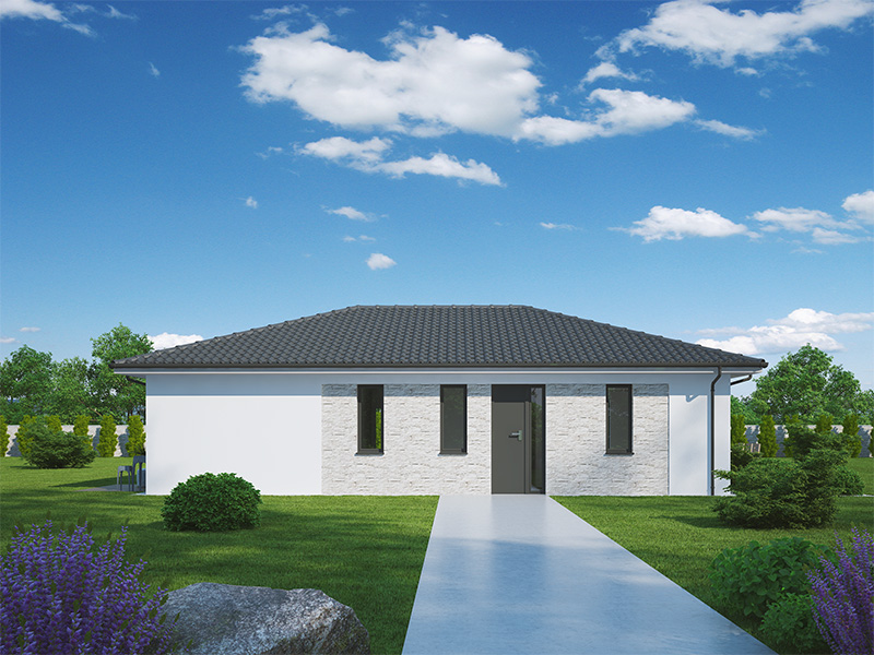 Kristýna 40 je přízemní dům typu bungalow o dispozici 5+kk, který splní sen mladé, až pětičlenné rodiny. Na dostatečně velké užitné ploše naleznete obývací pokoj s kuchyňským koutem, ložnici rodičů a tři stejně velké dětské pokoje. V centru domu je umístěna i společná koupelna, samostatné WC a technická místnost. Dům je vhodný pro ty klienty, kteří potřebují vyřešit bydlení početné rodiny s minimálními nároky na prostor a finance. Celková zastavěná plocha pak umožní dům umístit i na velmi malý pozemek.